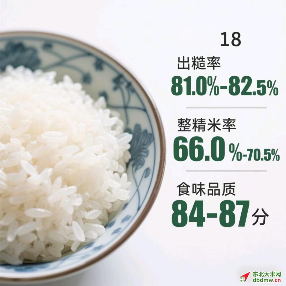 品质表现:出糙率81.0%-82.5%,整精米率66.0%-70.5%,垩白粒米率1.0%-3.0%,垩白度0.1%-0.3%,直链淀粉含量(干基)17.8%-18.5%,胶稠度76-80毫米,食味品质84-87分,符合优质米标准,米饭口感柔软、有嚼劲,米香清新。